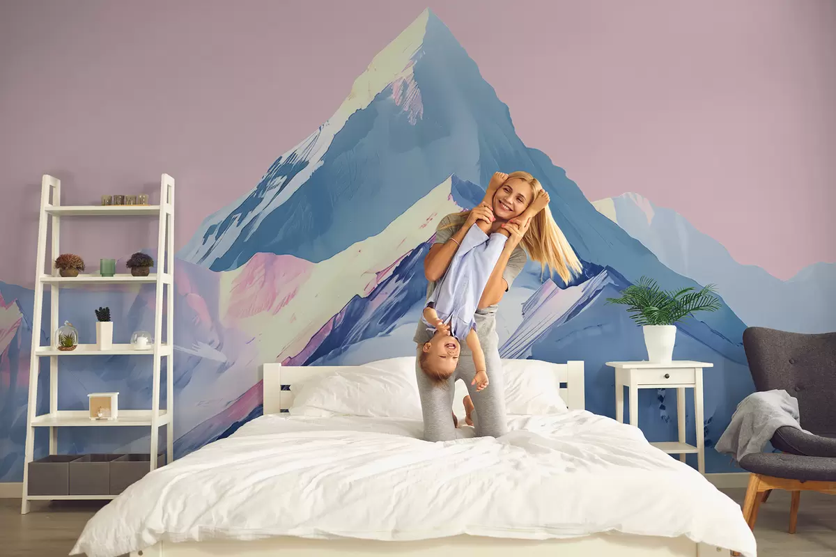 Fototapetak Kék és rózsaszín hegyek rajzolt stílusban Nr. w01497