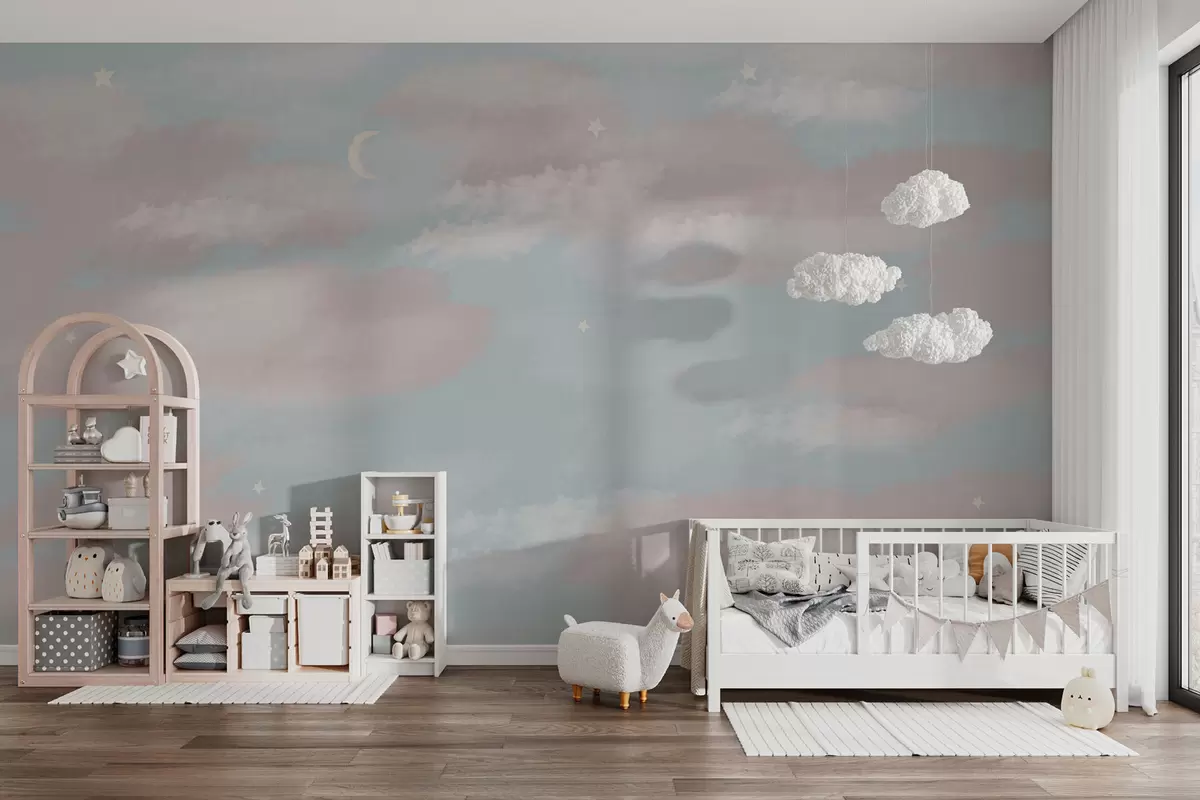 Fototapetak Varázslatos égbolt felhőkkel, holddal és csillagokkal Nr. w01549