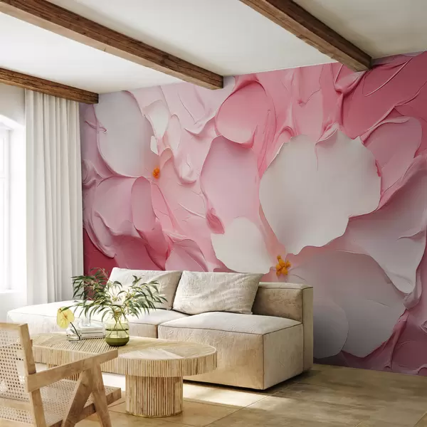 Fototapetak Fehér absztrakt virágok festék vonások rózsaszín színű Nr. w01555