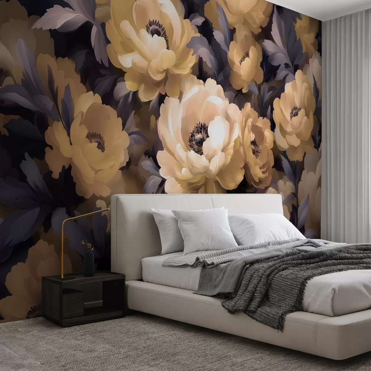 Fototapetak Virágos olajfestmény stílus alapján bézs és lila színben Nr. w01581