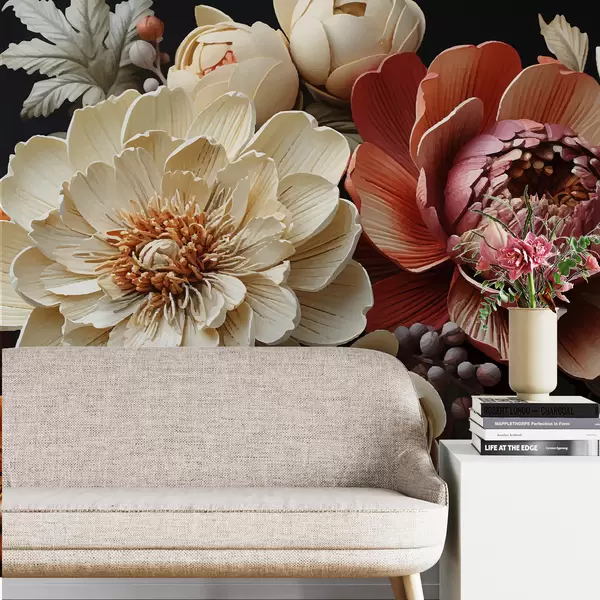 Fototapetak Nagy virágok,pünkösdi rózsák,sötét háttér,fényes virágok Nr. w01662