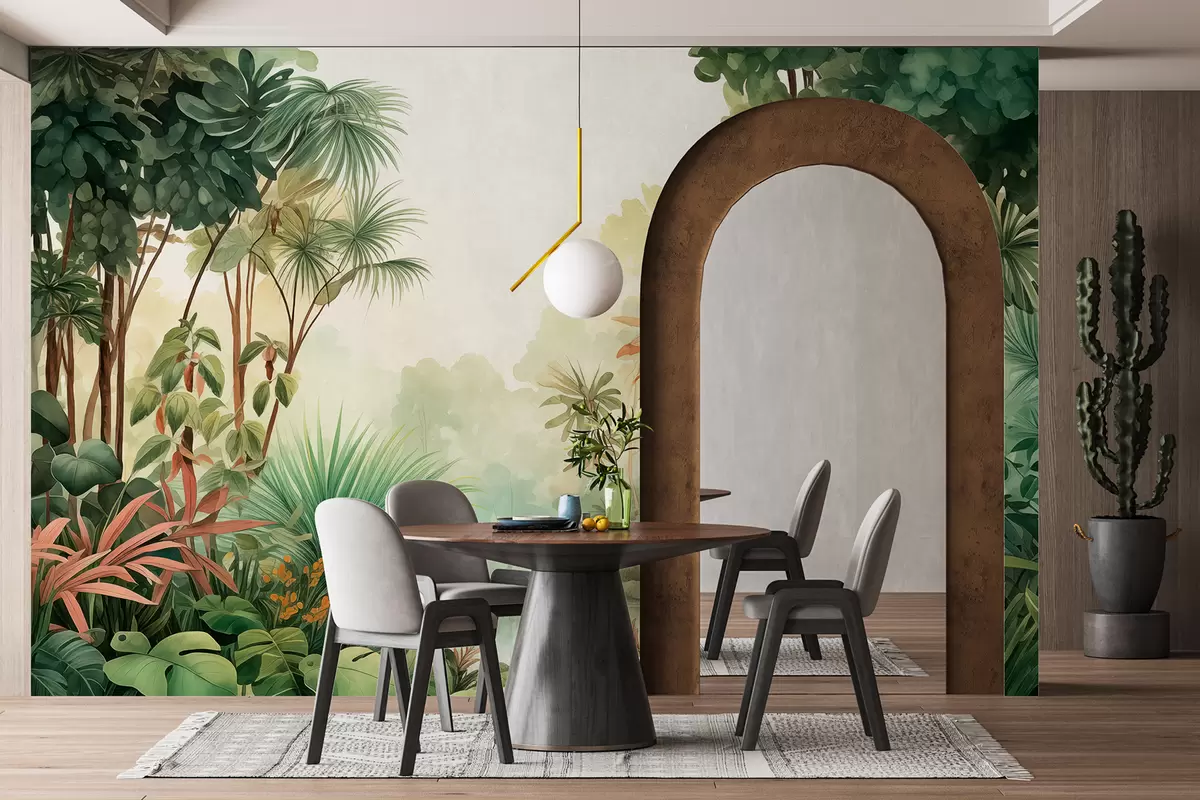 Fototapetak Akvarell dzsungel erdő, pálmafák, tó, zöldellés Nr. w01784