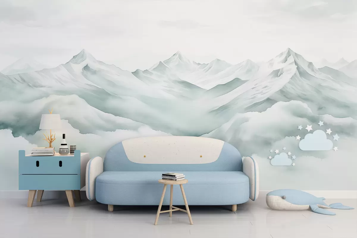 Fototapetak Hegyi táj, akvarell, lágy kék színek, lágy kék színek Nr. w01787v2