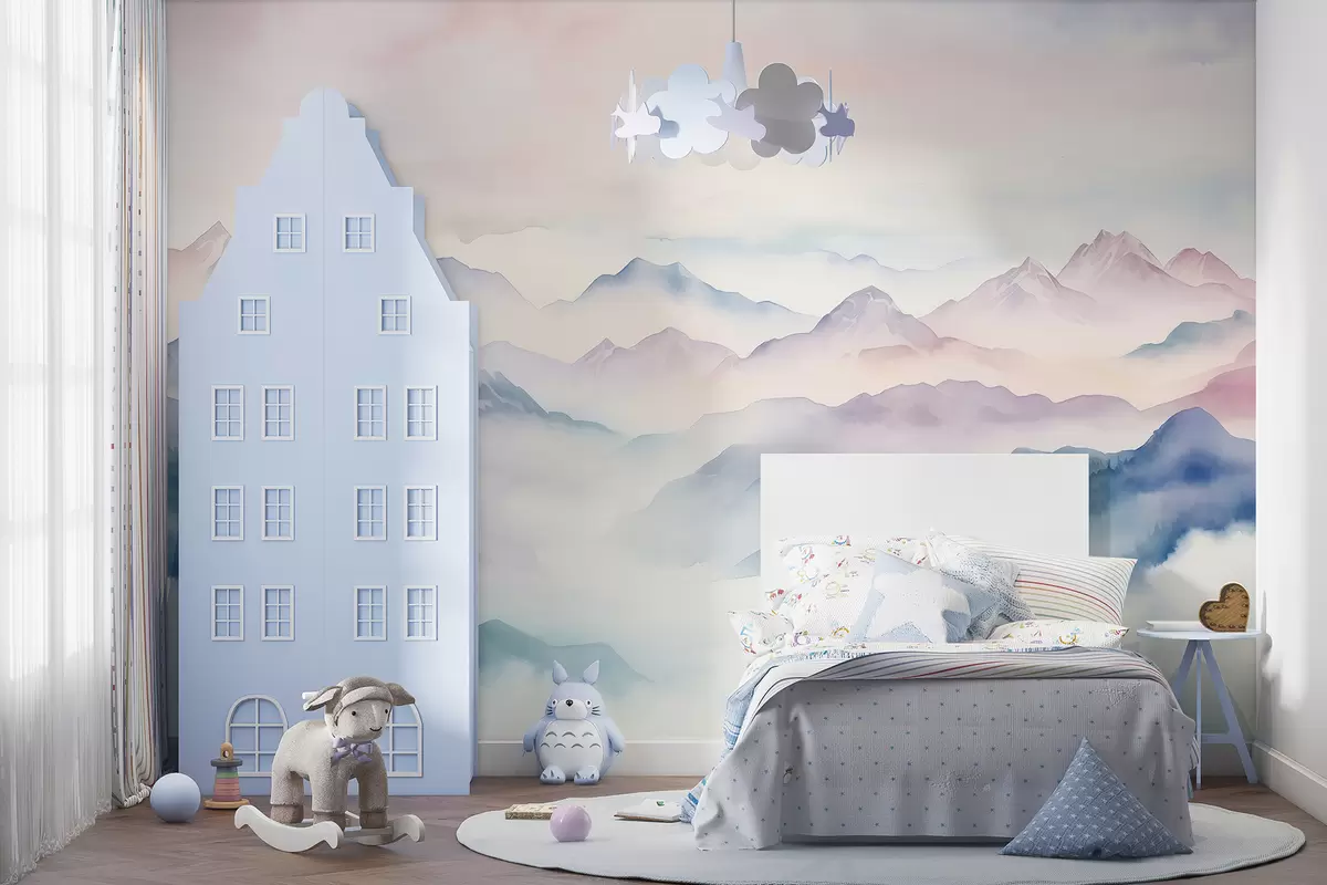 Fototapetak Éteri hegyek táj, felhők, akvarell, vízfestmény Nr. w01791