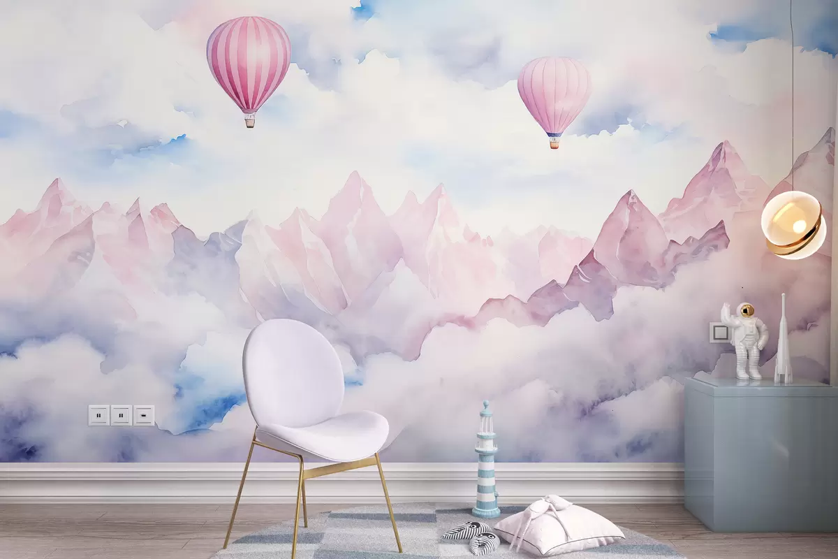Fototapetak Gyönyörű hegyvidéki táj léggömbökkel, akvarell Nr. w01792