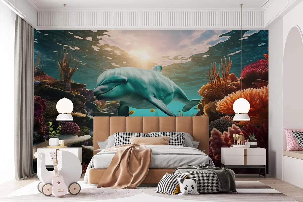 Fototapetak Nagy delfin a korallzátonyok víz alatti világában Nr. w01873