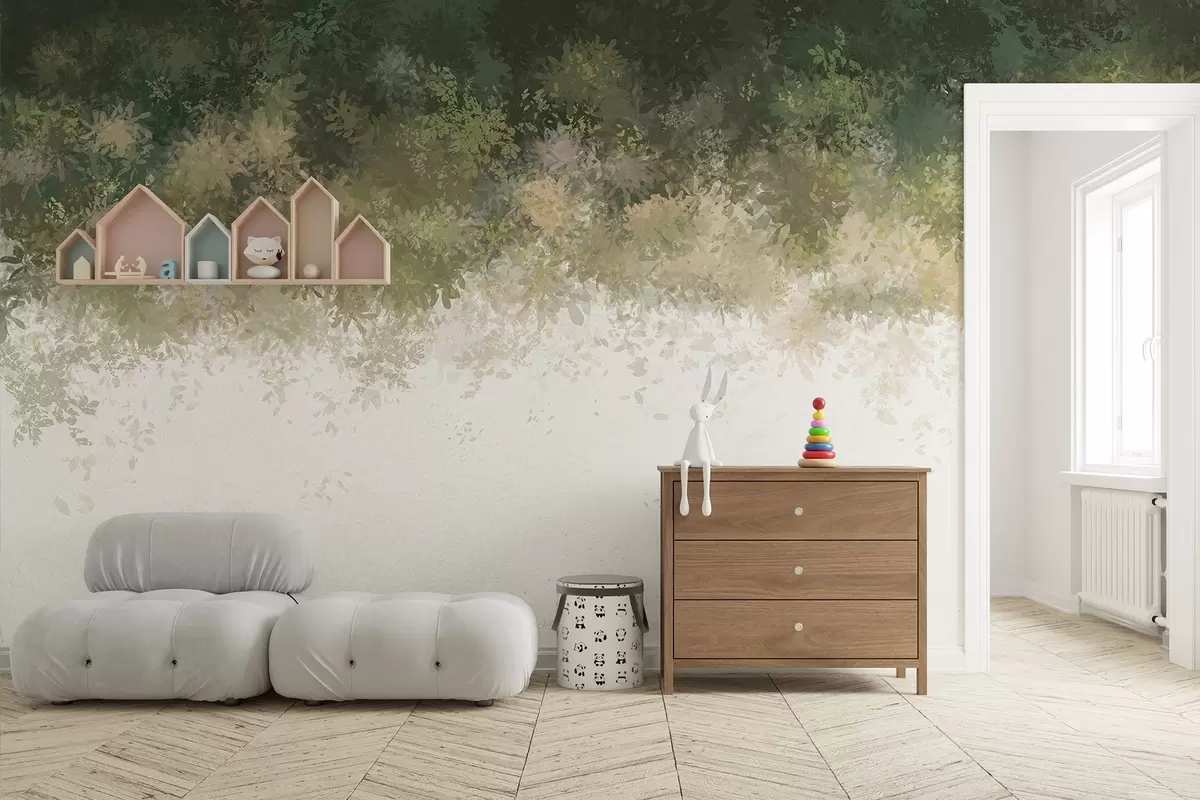 Fototapetak Gyönyörű zöld levelek, virágos dísz, akvarell, természet Nr. w01879