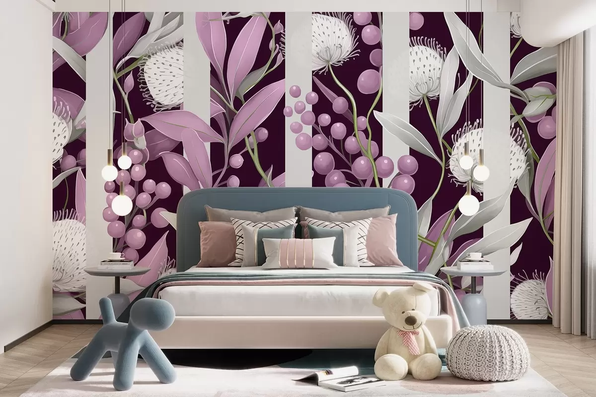 Fototapetak Virágok dísze vadon termő bogyókkal, vintage, rózsaszín és zöld színekben Nr. w01886v1