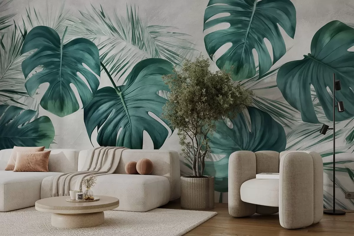 Fototapetak Nagy monstera levelek és trópusi levelek Nr. w01891