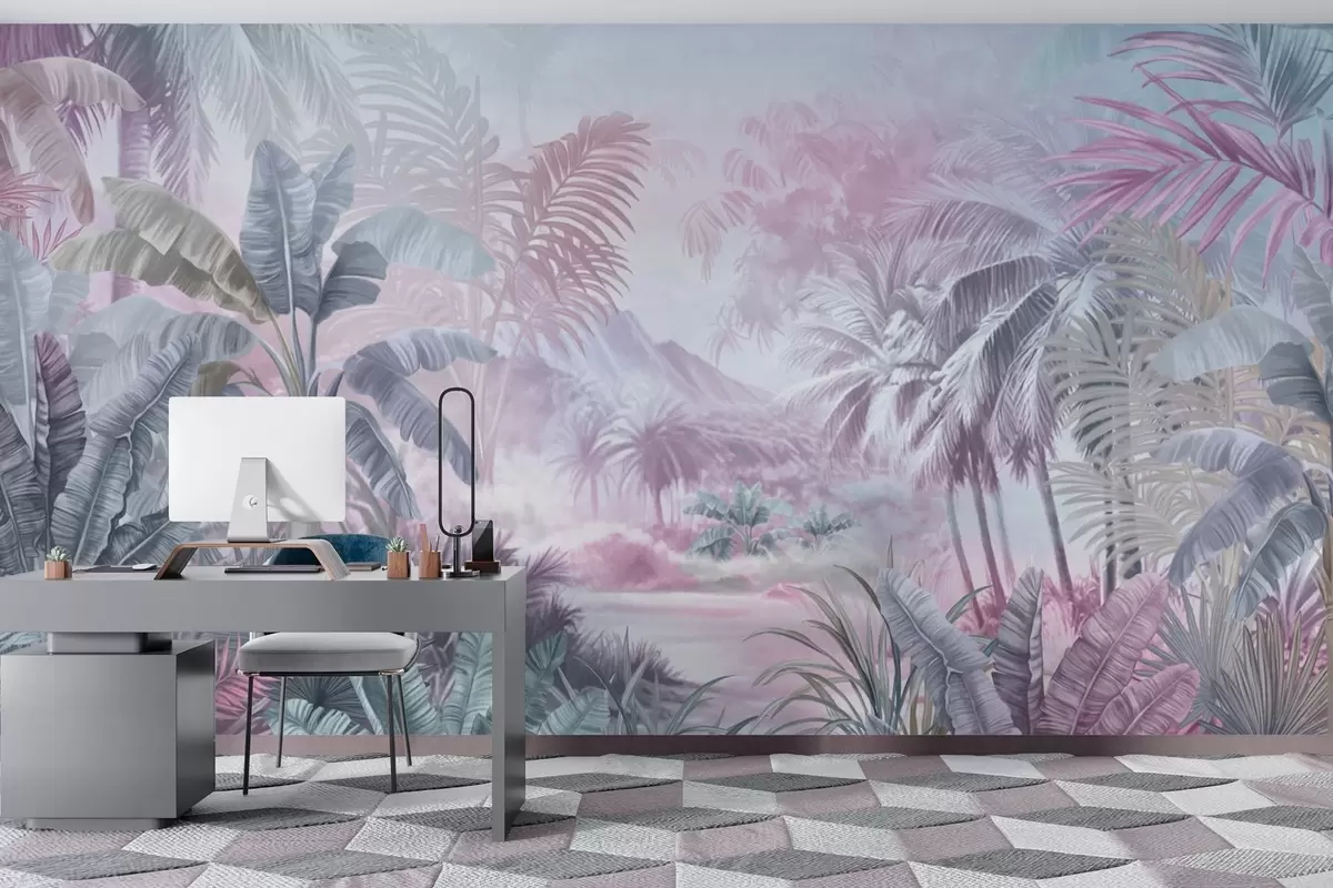 Fototapetak Esőerdő lágy kék és rózsaszín tónusokban Nr. w01931v2