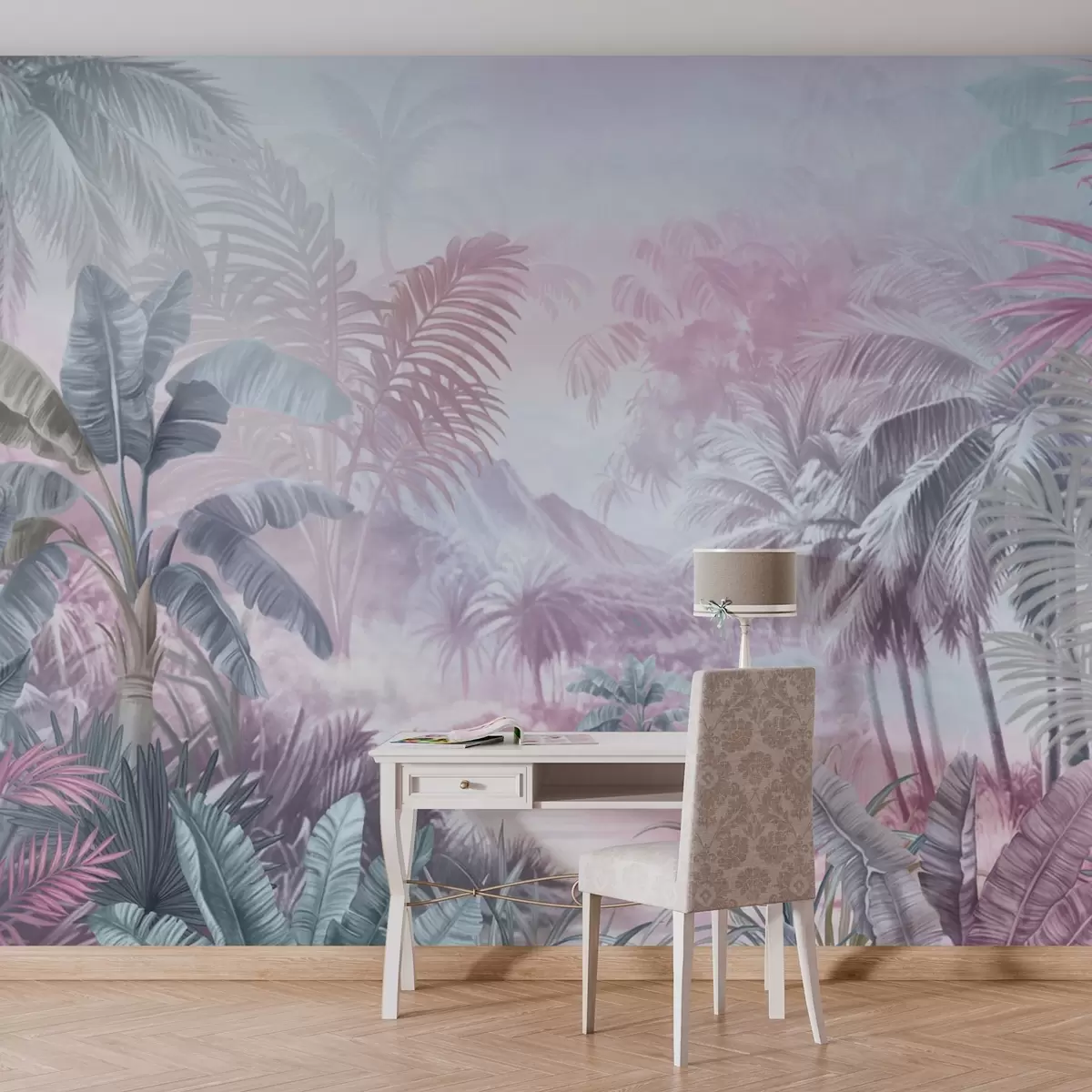 Fototapetak Esőerdő lágy kék és rózsaszín tónusokban Nr. w01931v2
