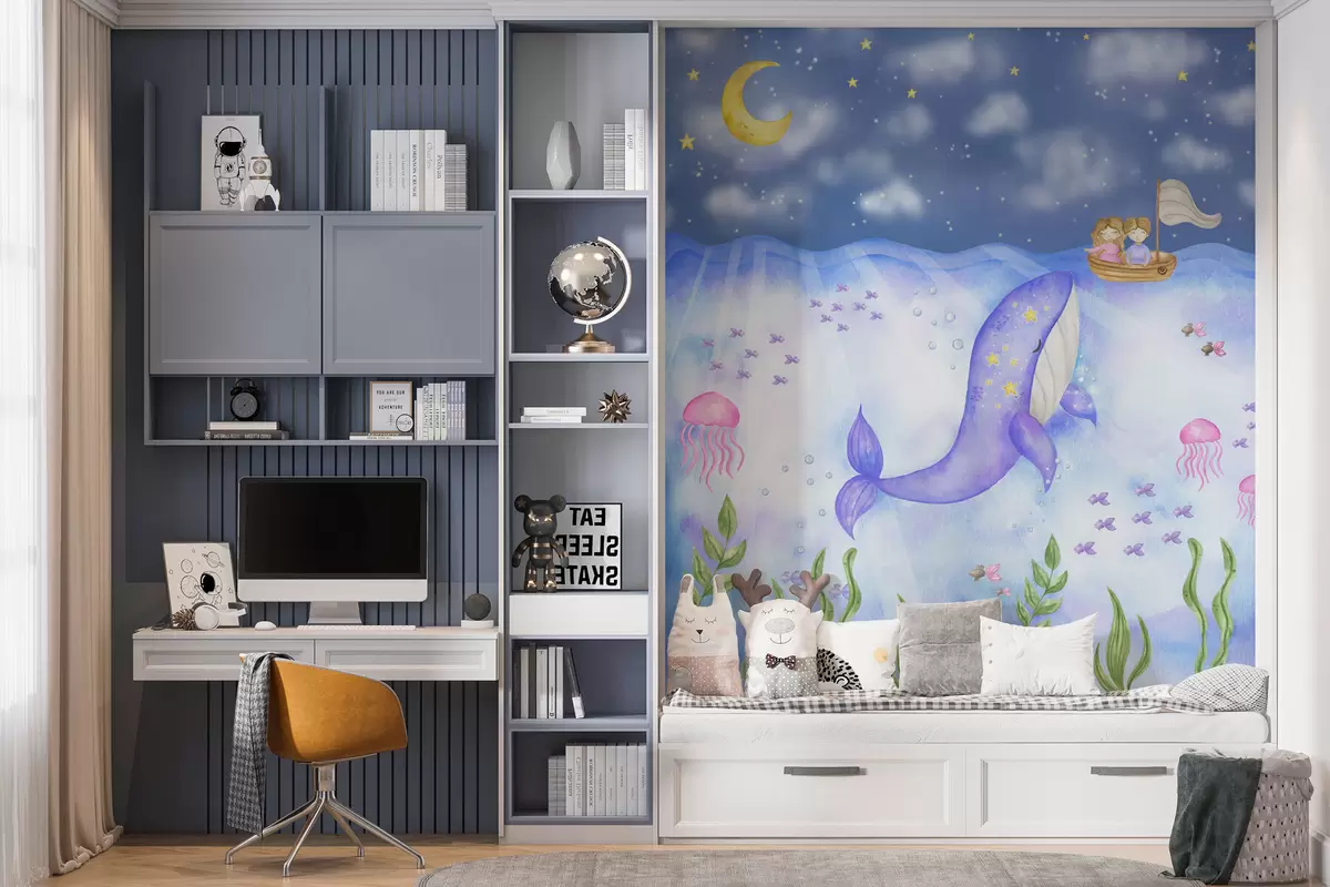 Fototapetak A bálna csillagos éjszaka alatt úszik Nr. w01965