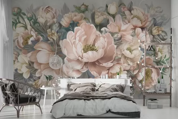 Fototapetak Nagy virágok bézs por színben Nr. w01966v2