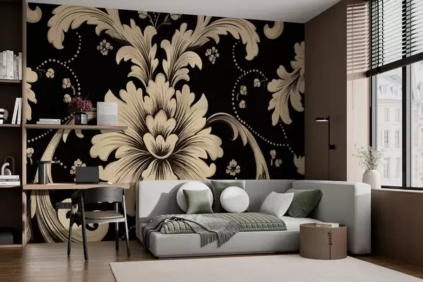 Fototapetak Klasszikus barokk minta bézs és sötét tónusokban Nr. w01979