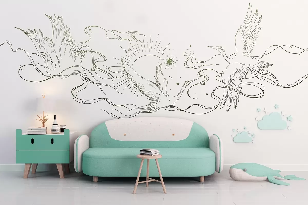 Fototapetak Repülő madarak, vonalas rajz, minimalizmus, szürke színpaletta Nr. w02022v1