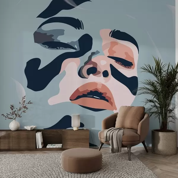 Fototapetak Lány arca kék háttéren, színekkel festve Nr. w02060v1