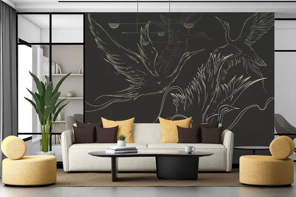 Fototapetak Madarak repülnek, minimalizmus, vonal művészet, természet, sötét háttér Nr. w02061v3