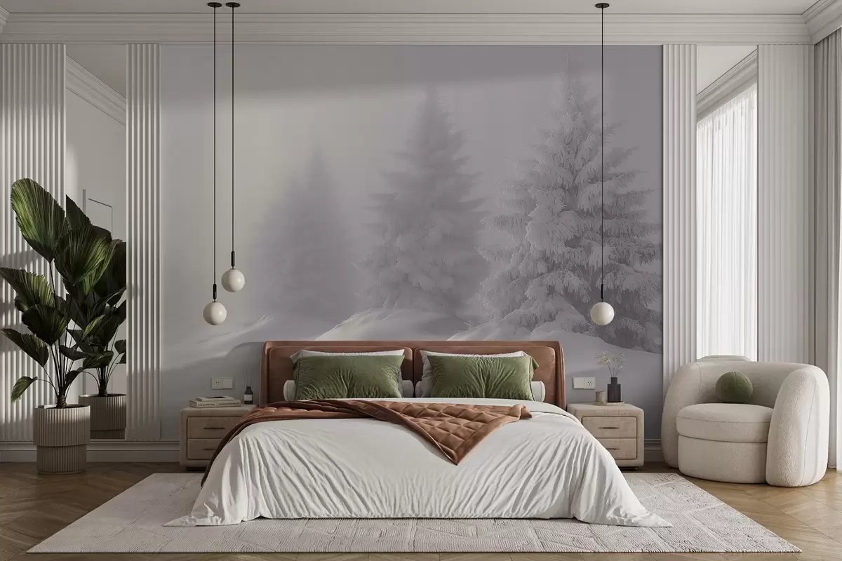 Fototapetak Havas fenyőfák a ködös reggel magányában Nr. w02065