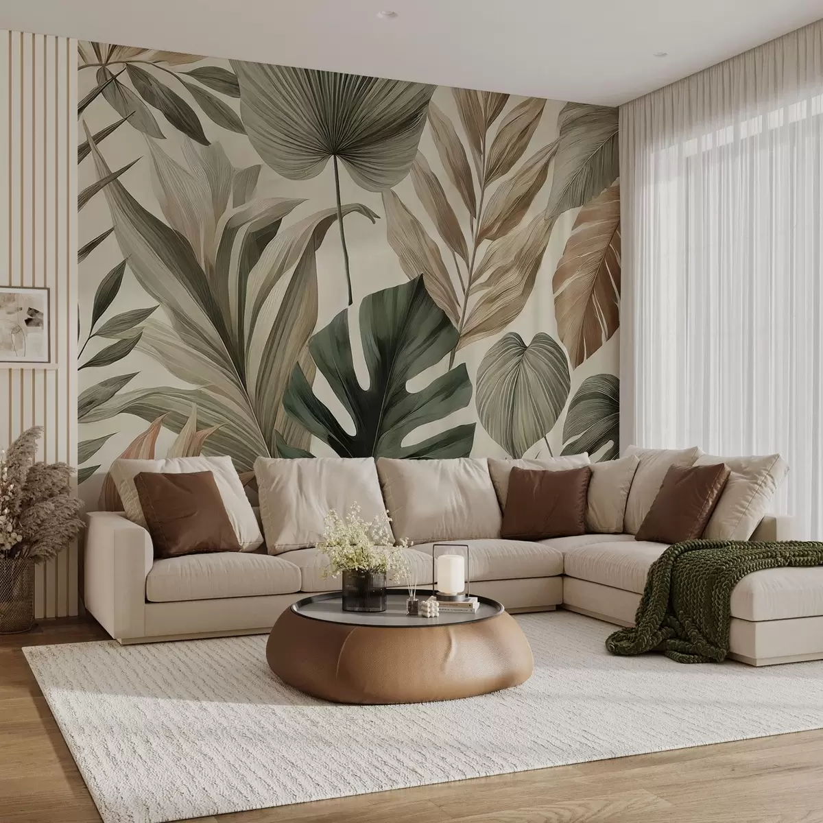 Fototapetak Nagy trópusi levelek visszafogott, finom pasztell árnyalatokban Nr. w02082