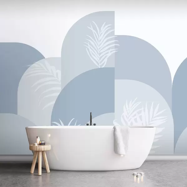 Fototapetak Trendi boltívek trópusi levelekkel kék színben Nr. w02101v3