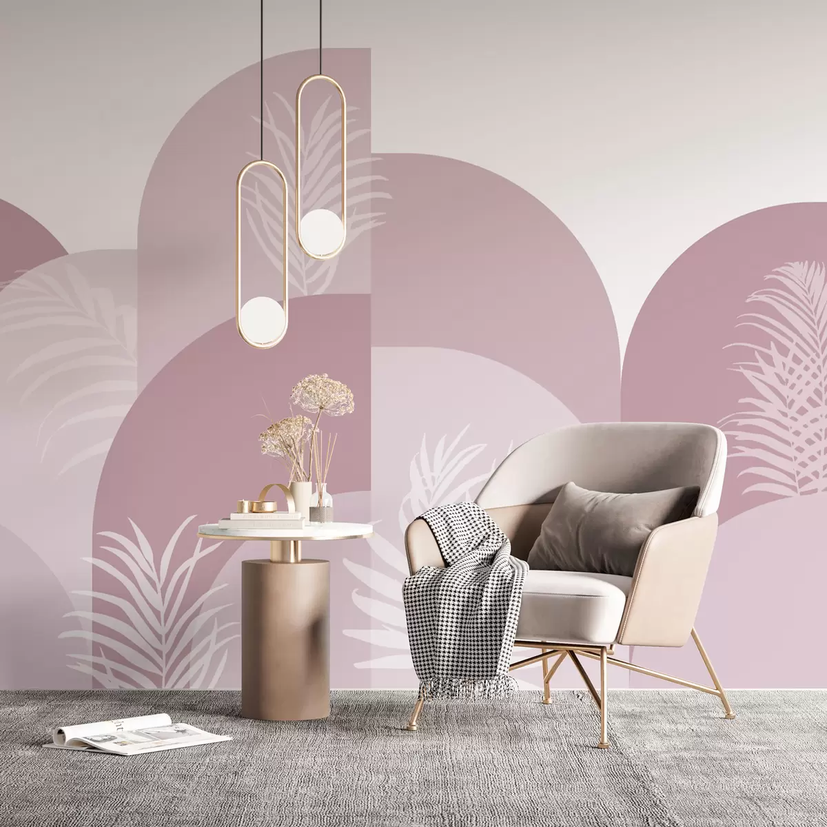 Fototapetak Trendi boltívek trópusi levelekkel rózsaszín színben Nr. w02101v4