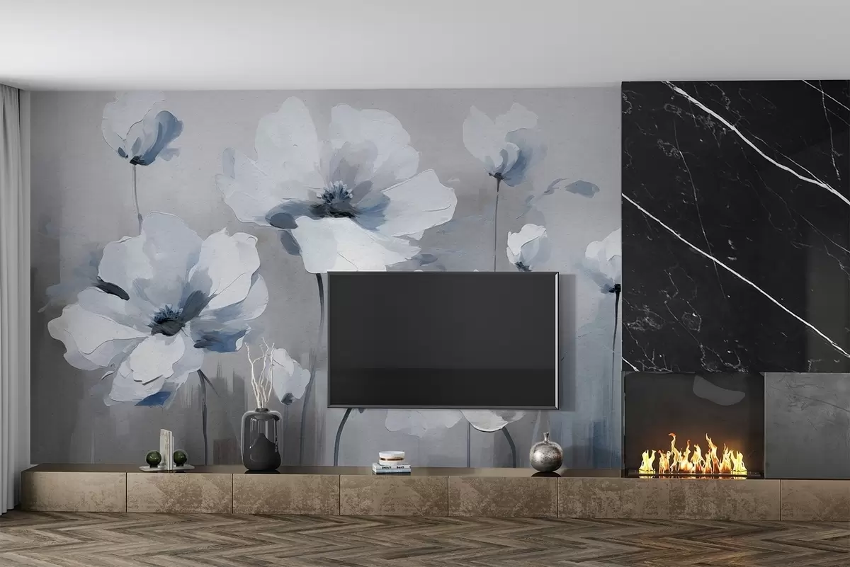 Fototapetak Olajjal festett virágok egy beton falon Nr. w02120v1