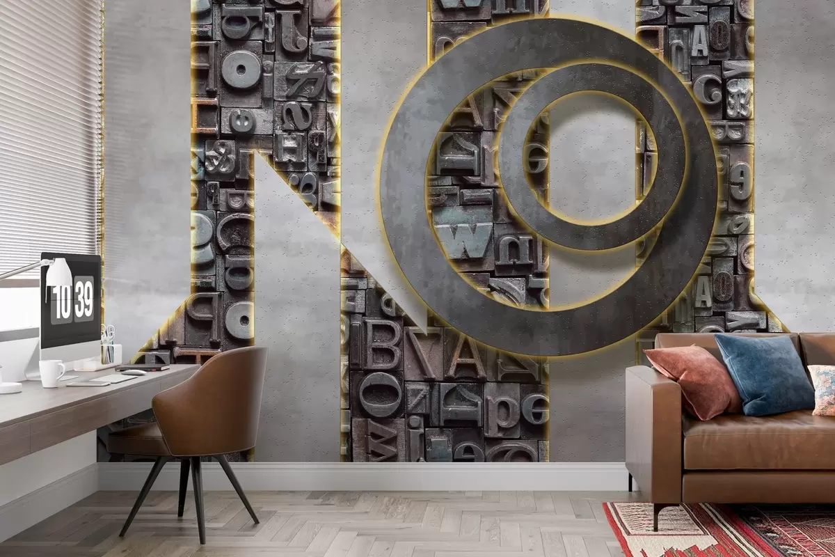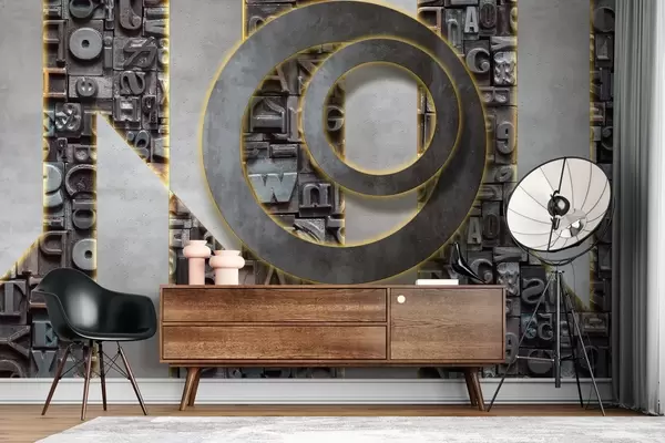 Fototapetak Modern loft stílusú tapéta háromdimenziós betűk, beton és háttérvilágítás utánzásával Nr. w02125