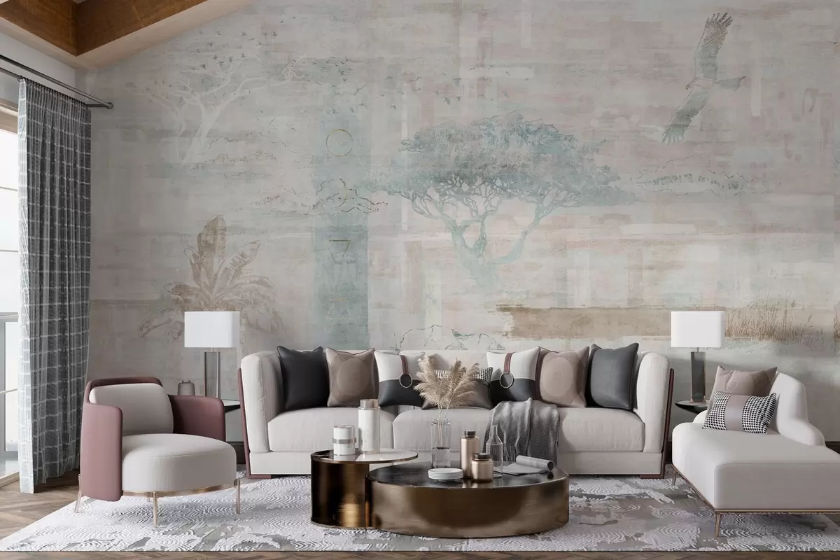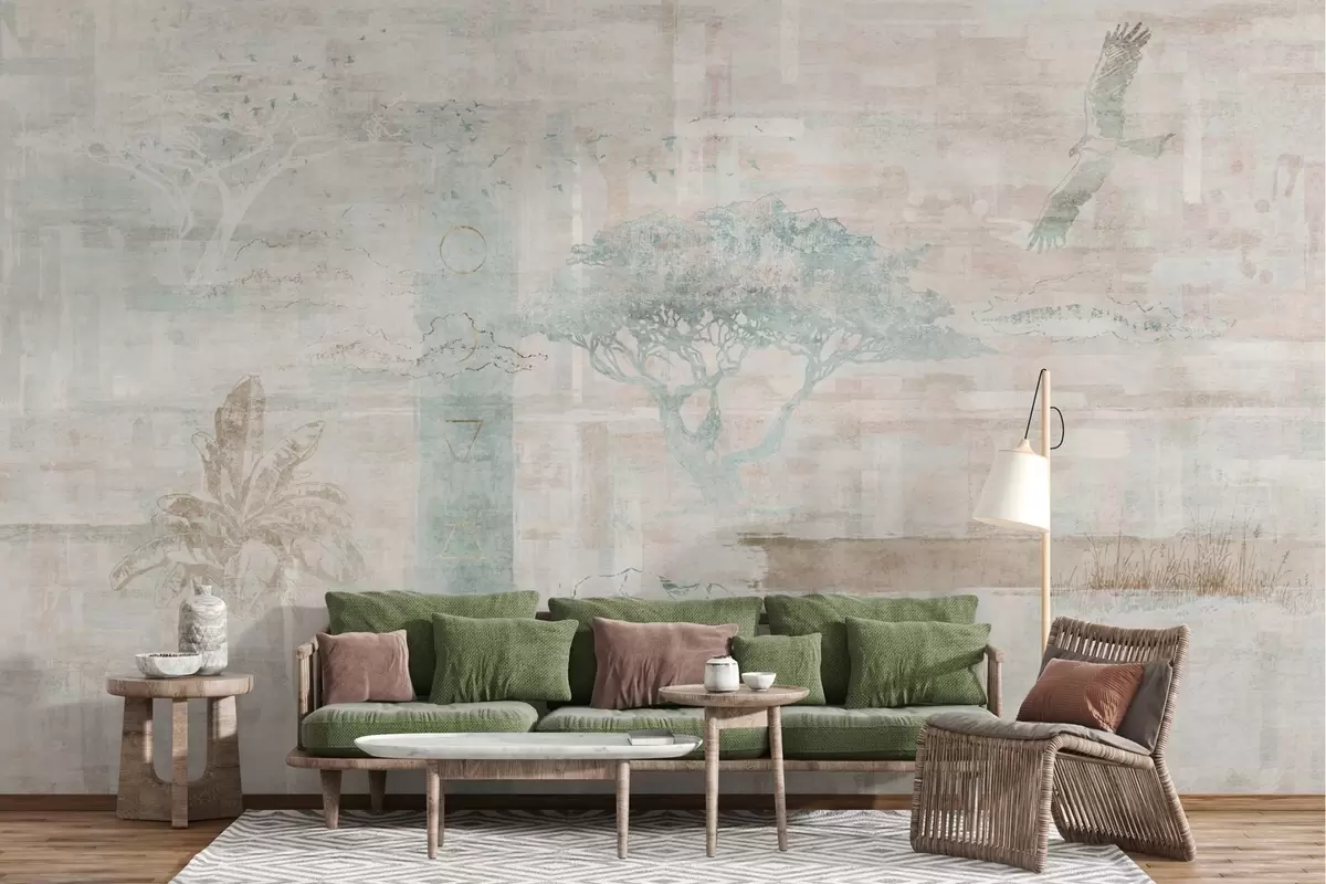 Fototapetak Vintage grunge hatású design fákkal, sassal és geometriai elemekkel Nr. w02130