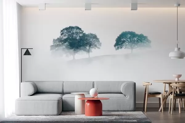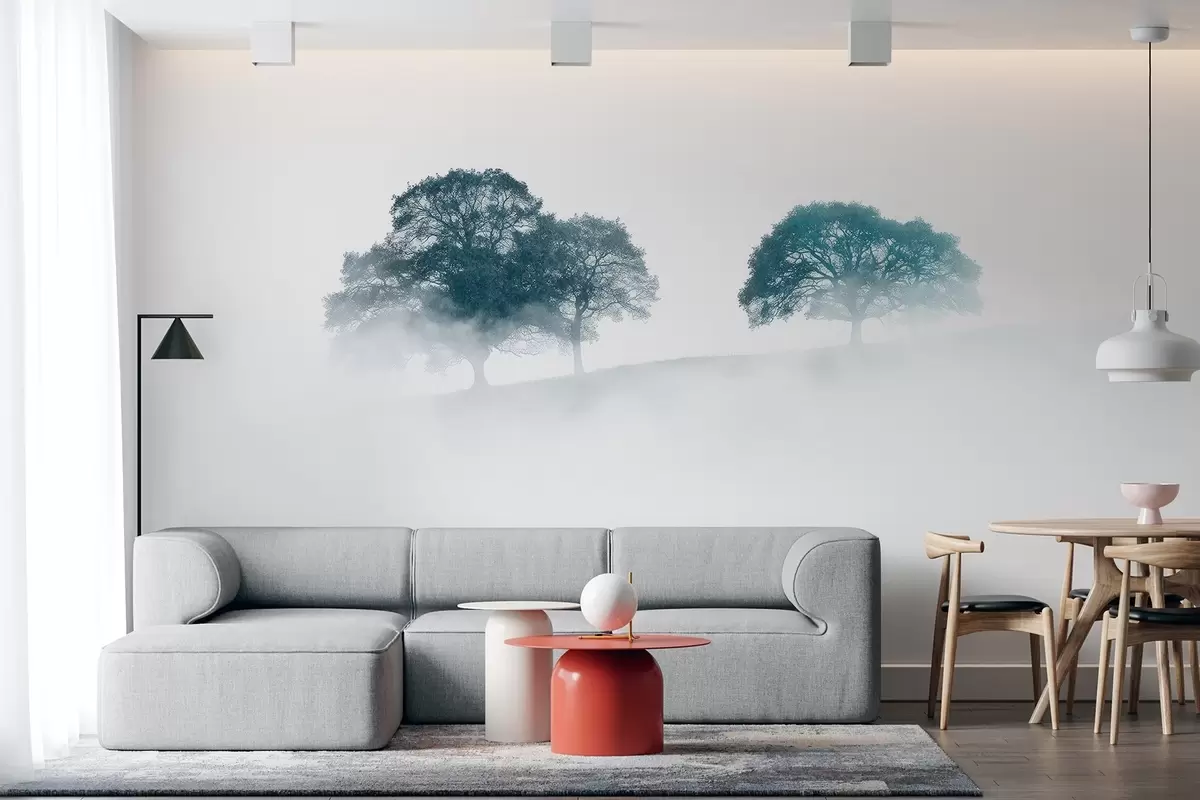 Fototapetak Fák a dombon, minimalizmus, természet, kék színpaletta, kék színpaletta Nr. w02148v1
