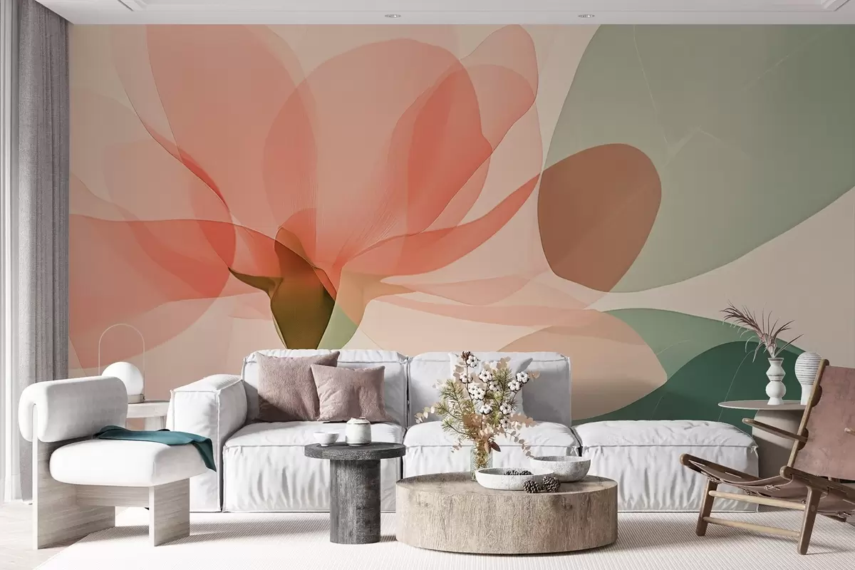 Fototapetak Finom rózsaszínű gardéniák és zöld árnyalatú átlátszó levelek Nr. w02194