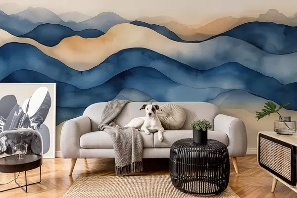 Fototapetak Hegyekre emlékeztető absztrakt kék-bézs hullámok Nr. w02196