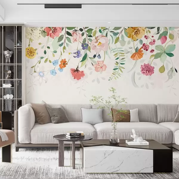 Fototapetak élénk színes virágok és levelek a tetején Nr. w02201