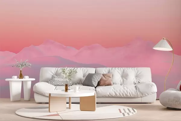 Fototapetak Lágy málnás naplemente a hegyek és az égbolt hátterében Nr. w02234
