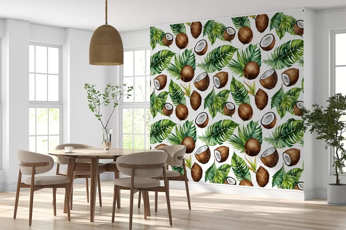 Fototapetak trópusi minta kókuszdióval és levelekkel Nr. w02293