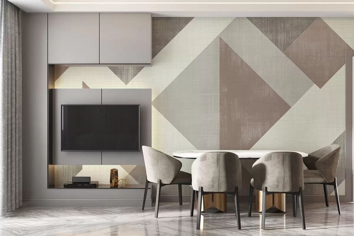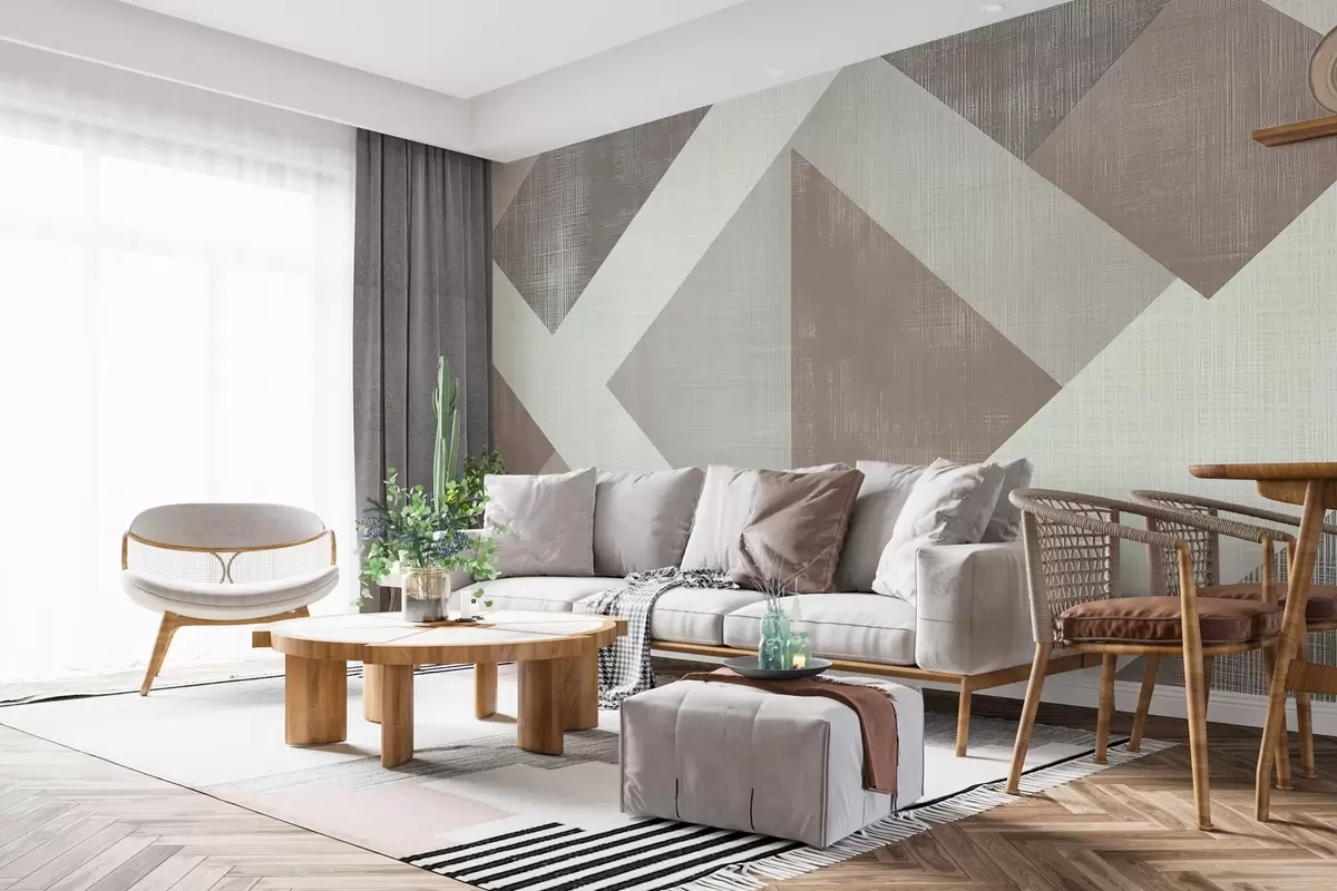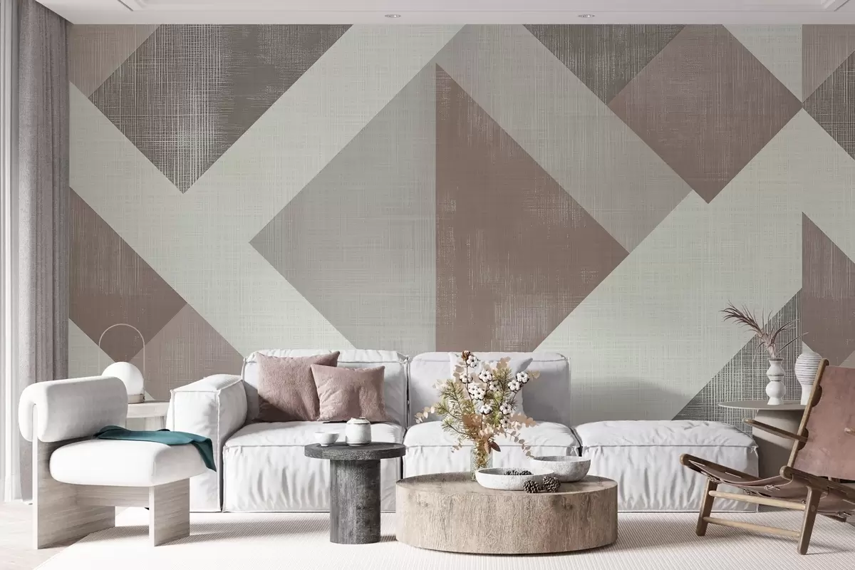 Fototapetak Modern geometrikus tapétadizájn átfedő formákkal, lágy bézs, zöld és szürke árnyalatokban Nr. w02341v1
