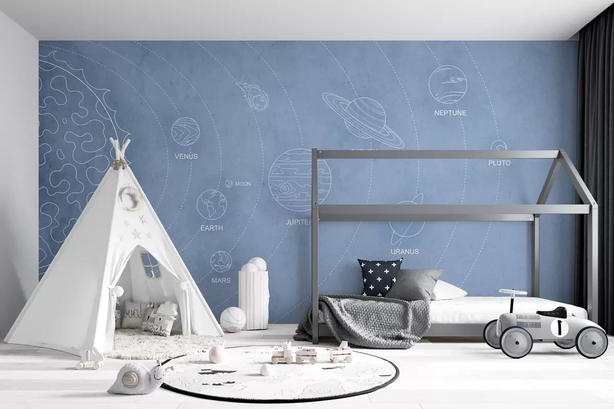 Fototapetak Naprendszer minimalista stílusban, kék textúrájú háttéren Nr. w02344v1