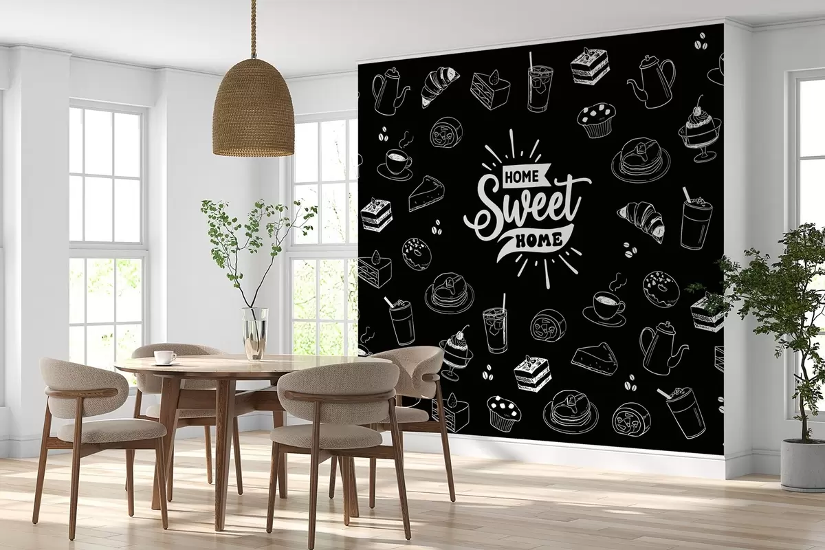 Fototapetak fekete tapéta a konyhába fehér mintákkal Nr. w02349
