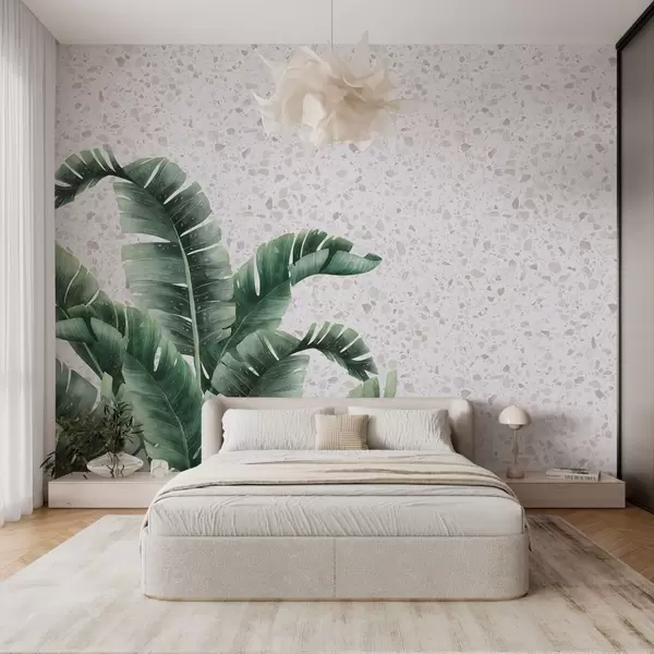 Fototapetak Trópusi levelek és terrazzo háttér Nr. w02376