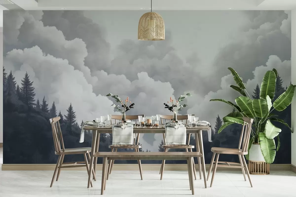 Fototapetak Festett sűrű felhők az erdő felett olaj stílusban Nr. w02411