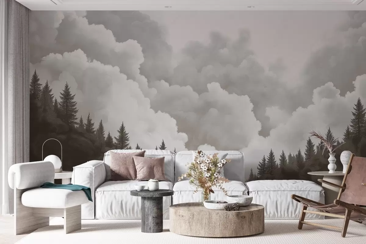 Fototapetak Festett sűrű felhők az erdő felett olaj stílusban Nr. w02411v1
