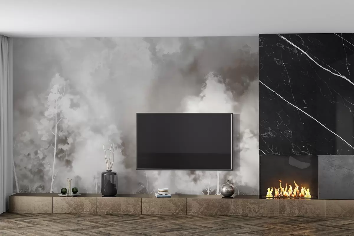 Fototapetak Stílusos erdő pasztell színekben, kréta hatás a falon Nr. w02412v1