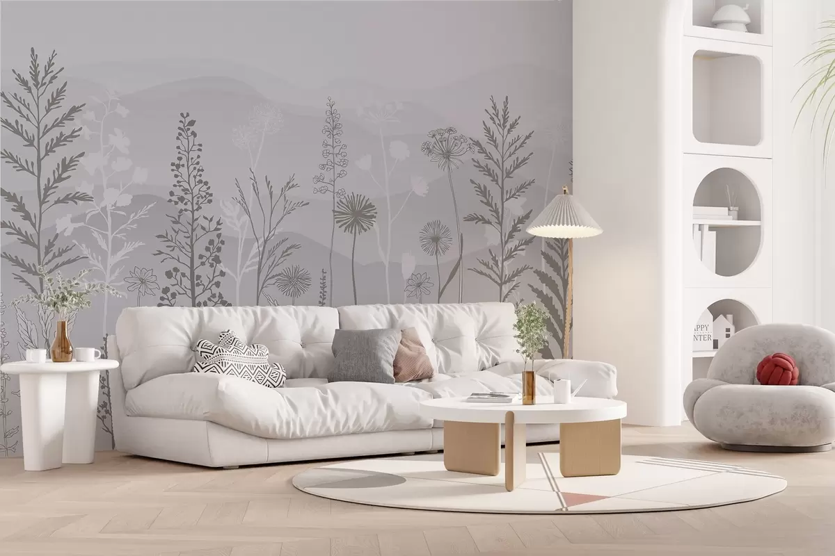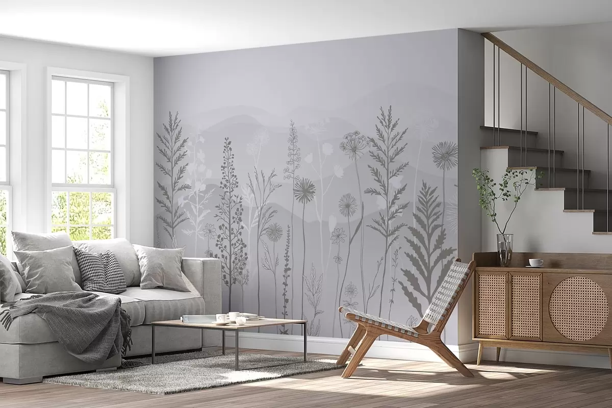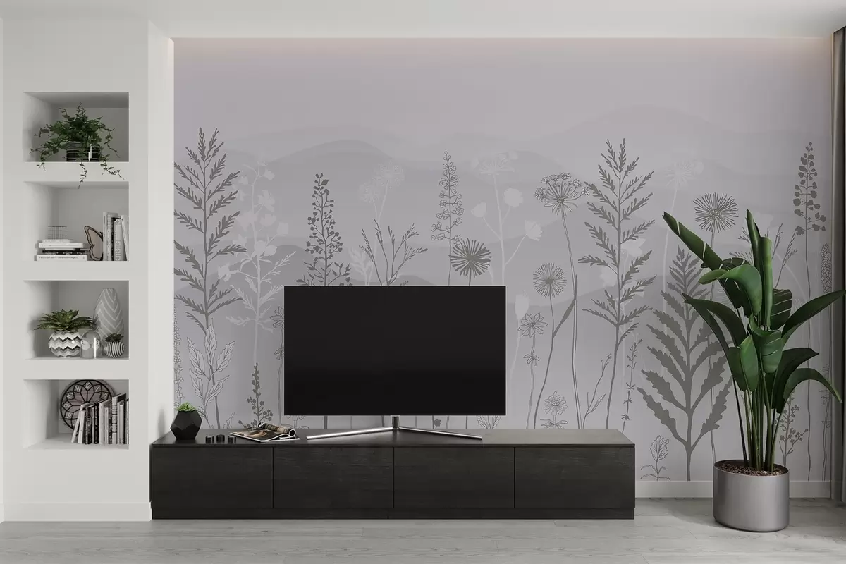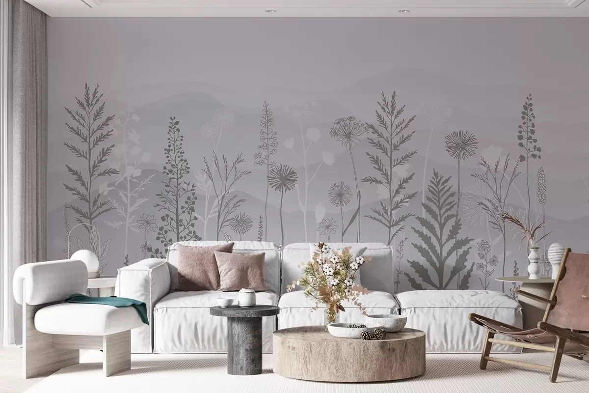 Fototapetak öko-stílusú tapéta, vadvirágok szürke árnyalatokban Nr. w02443