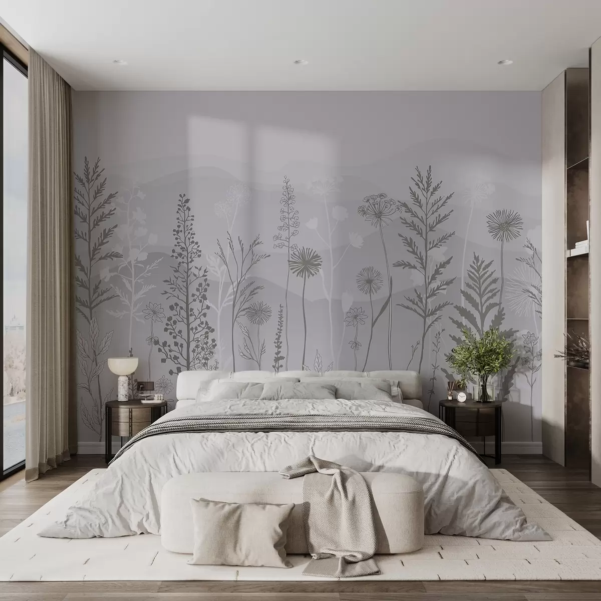 Fototapetak öko-stílusú tapéta, vadvirágok szürke árnyalatokban Nr. w02443
