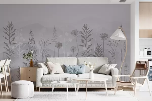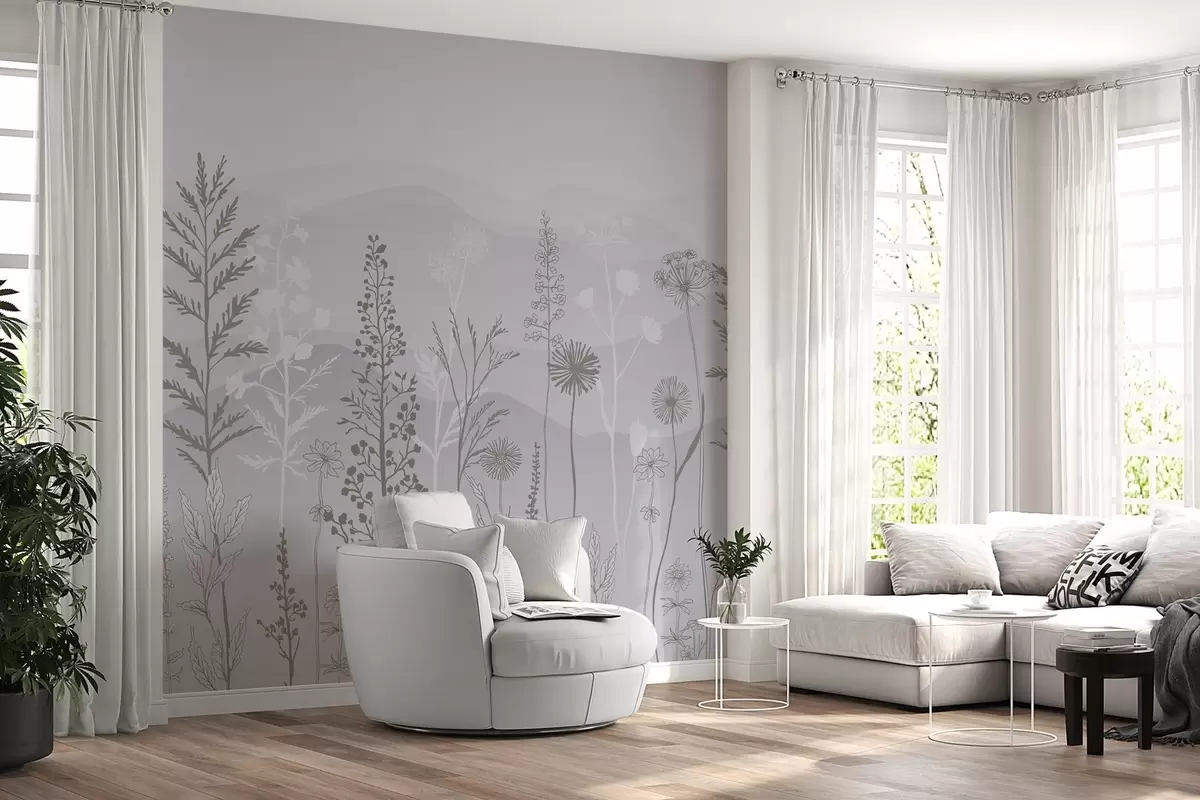 Fototapetak öko-stílusú tapéta, vadvirágok szürke árnyalatokban Nr. w02443
