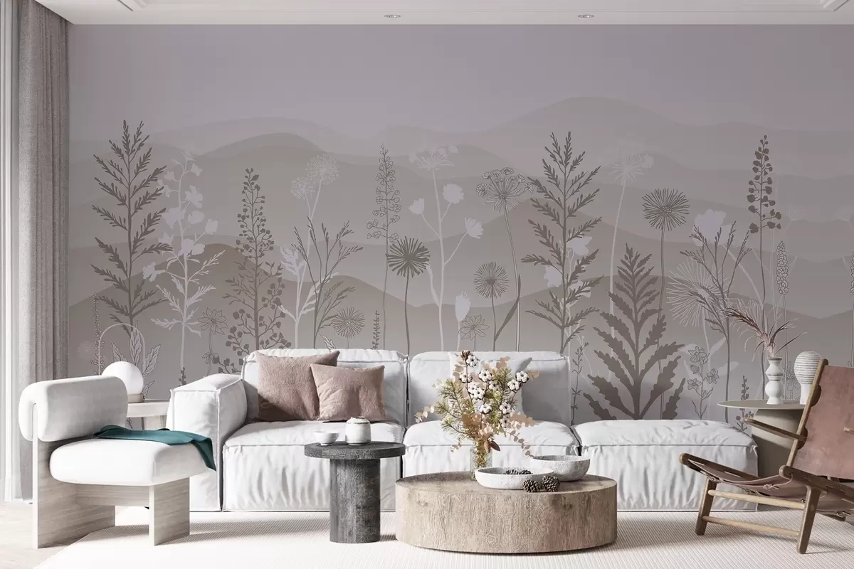 Fototapetak öko-stílusú tapéta, vadvirágok világosbarna árnyalatokban Nr. w02443v1