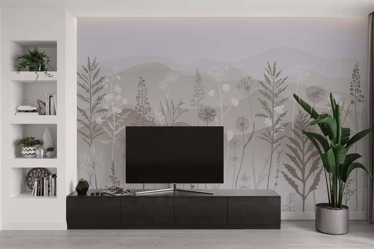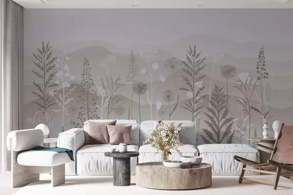 Fototapetak öko-stílusú tapéta, vadvirágok világosbarna árnyalatokban Nr. w02443v1