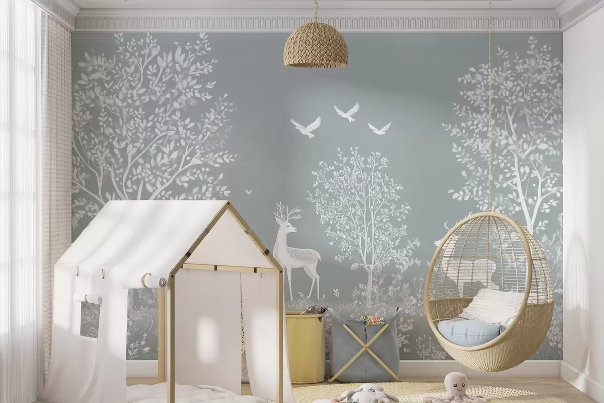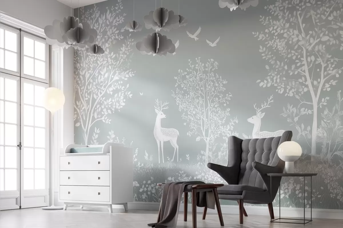 Fototapetak erdő szarvasokkal, krétarajz stílusában, szürke háttéren Nr. w02444v2