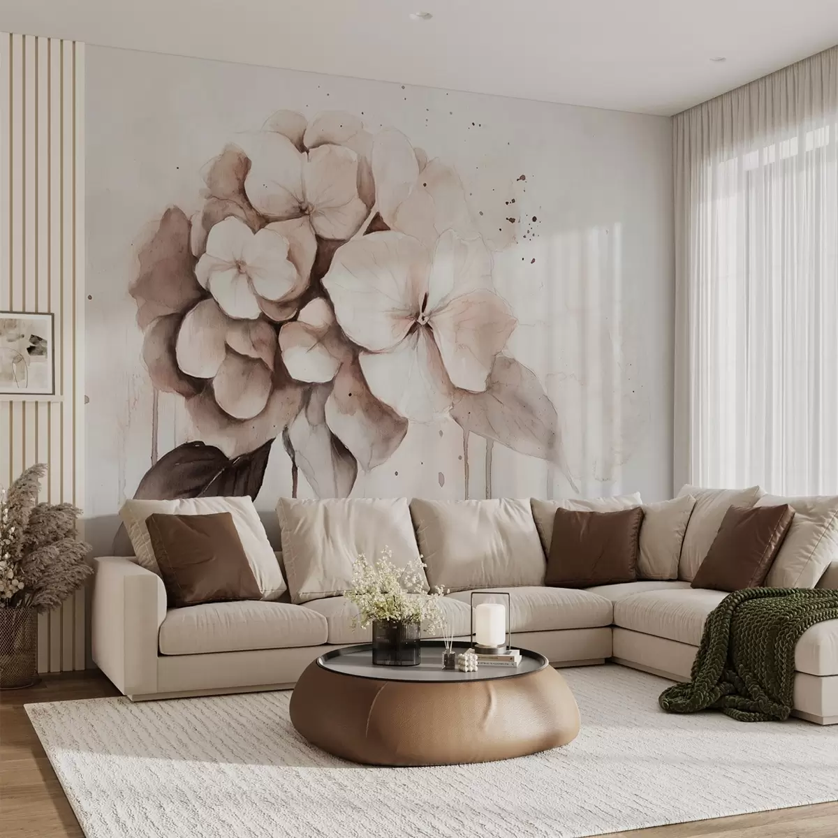 Fototapetak Hortenzia rajz, akvarell stílusban, bézs színben Nr. w02483