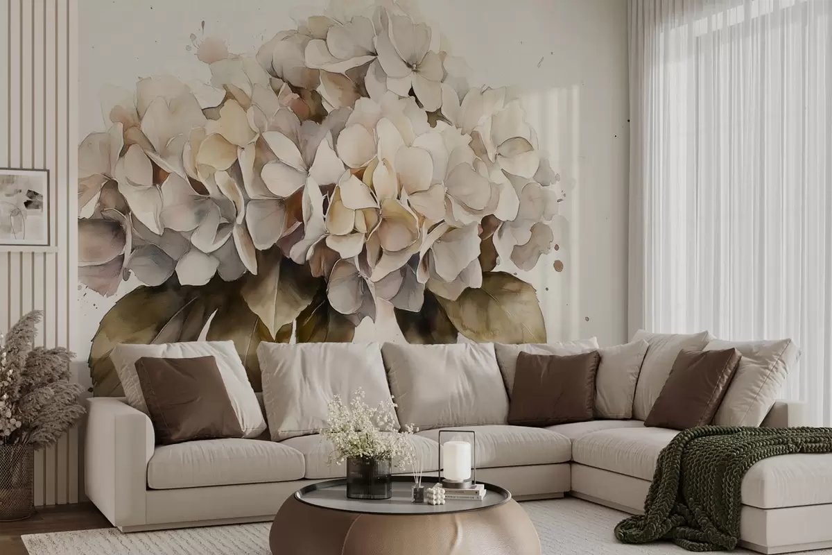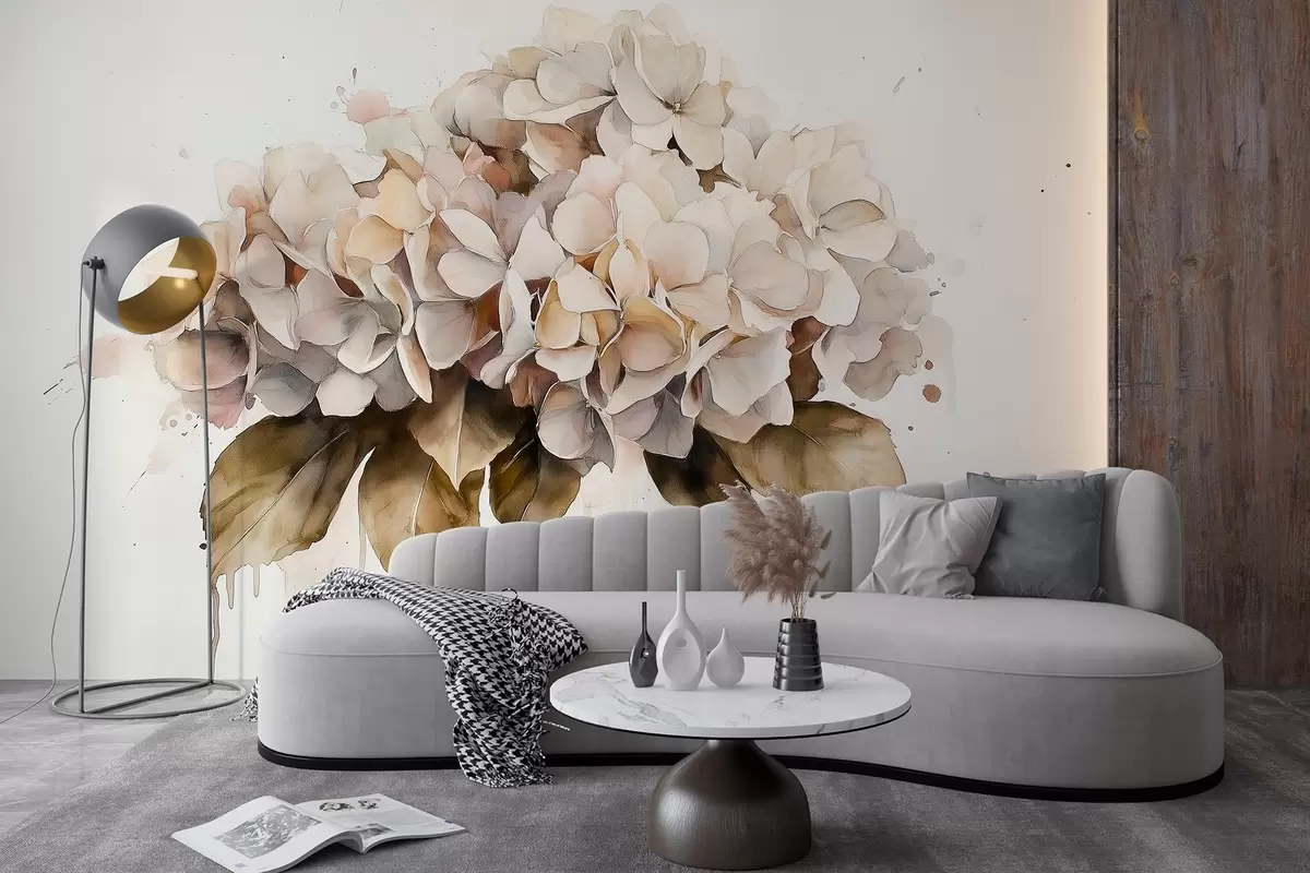Fototapetak Akvarell stílusú rajz hortenzia virág, bézs színek Nr. w02485