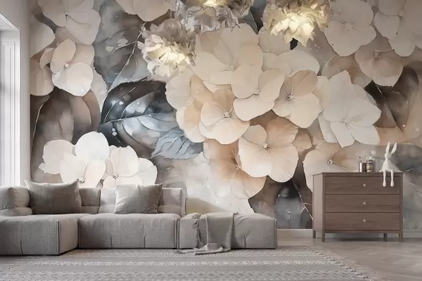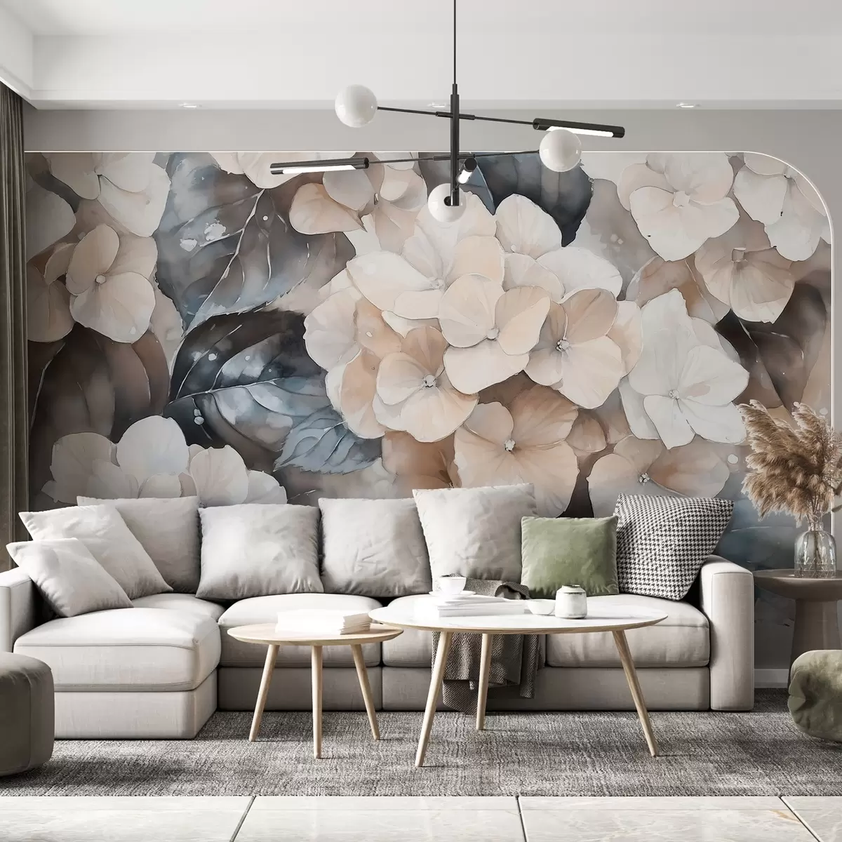 Fototapetak Hortenzia virágok, akvarell stílusú rajz, bézs színek, virágos Nr. w02488